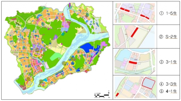 대상지는 1-5생활권(14,859㎡), S-2생활권(6,500㎡), 3-1생활권(9,020㎡), 3-3생활권(4,715㎡), 4-1생활권(7,686㎡)이다.