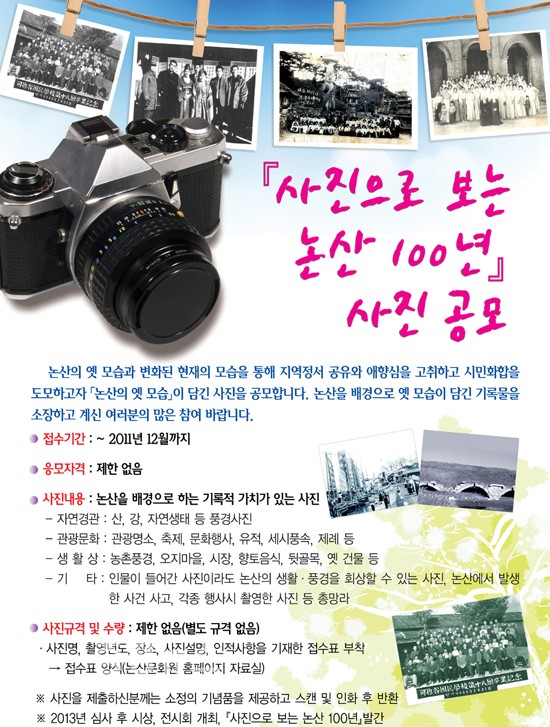 논산시문화원 관계자는 “이번 옛사진 공모를 통해 논산의 역사적인 사진들을 많이 만날 수 있을 것으로 기대된다.” 고 말했다.