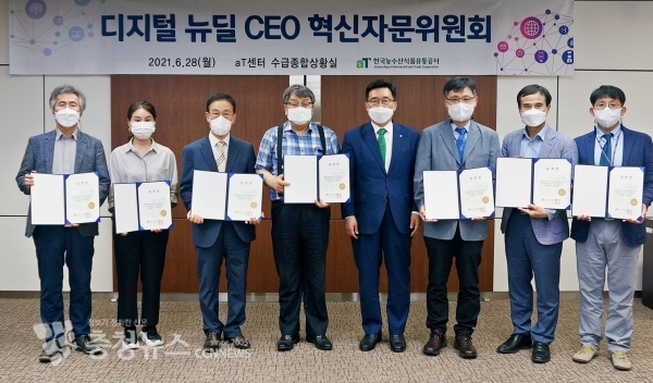 한국농수산식품유통공사(aT, 사장 김춘진)는 농수산식품산업의 디지털화 촉진을 위하여 디지털뉴딜 CEO혁신자문위원회를 신설하고, 28일 서울 aT센터에서 킥오프 회의를 개최했다.