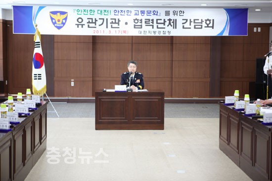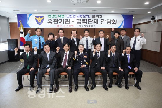 대전지방경찰청(청장 김 학배)은 “안전한 대전! 안전한 교통문화”를 조성하기 위하여 17일 대전시청을 비롯한 유관기관과 모범운전자회 등 협력단체 총14개 기관·단체가 참석한 가운데 간담회를 개최하였다.