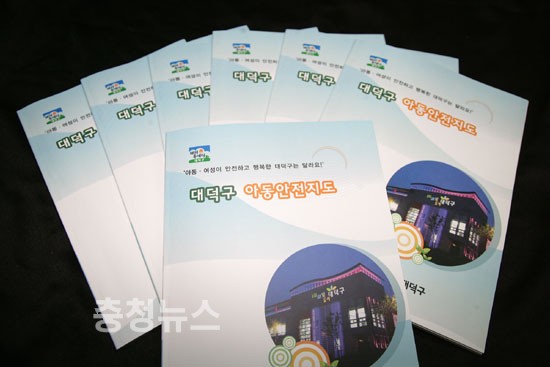 대덕구(구청장 정용기)는 여성가족부에서 아동․여성보호지역연대 시범운영지역을 대상으로 추진한‘아동안전지도 제작’을 완료하고 3,500장의 지도와 지도책자를 관내 전체 초등학교와 관련기관 및 시설에 배포했다고 20일 밝혔다.