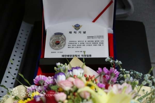 태안해양경찰서 제작 재직기념패 사진=태안해양경찰서