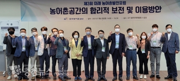 한국농어촌공사(사장 김인식)는 2일 대전 KT인재개발원에서 ‘농어촌 공간의 합리적 보전 및 이용방안’을 논의하기 위해 '제3회 미래농어촌발전포럼'을 개최했다.