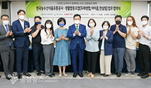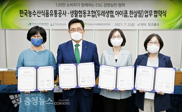 한국농수산식품유통공사(aT, 사장 김춘진)는 국민에게 안전한 먹거리 제공 및 ESG 경영실천을 위해 우리나라 대표 생활협동조합(생협)인 두레생협, 아이쿱, 한살림과 손을 잡았다.