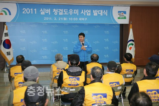 대전 대덕구(구청장 정용기)는 21일 구청 중회의실에서 건강하고 유휴노인 일자리 제공 및 지속 가능한 생태도시 조성을 위한 실버청결도우미사업 발대식을 개최했다.