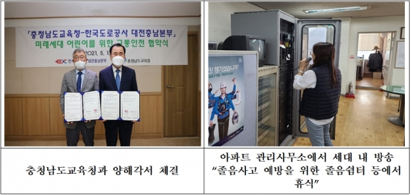 한국도로공사 교통안전 전문가가 충남 및 대전 소재 초등학교에 방문하여 교통안전 교육을 실시하고, 교통안전 홍보영상을 제공하며 안전시설 견학 프로그램을 추진할 예정이다.