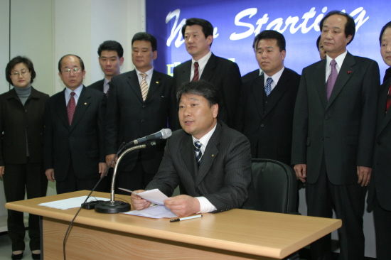 열린우리당 동구 당원협의회장이며 (주)푸른환경 회장을 맡고 있는 권득용 회장은 9일 오전 11시 한국철도공사 대전지역본부 5층 대회의실에서 지역 출마예정 광역의원· 기초의원 들이 함께 참석한 가운데 회견문을 발표했다.