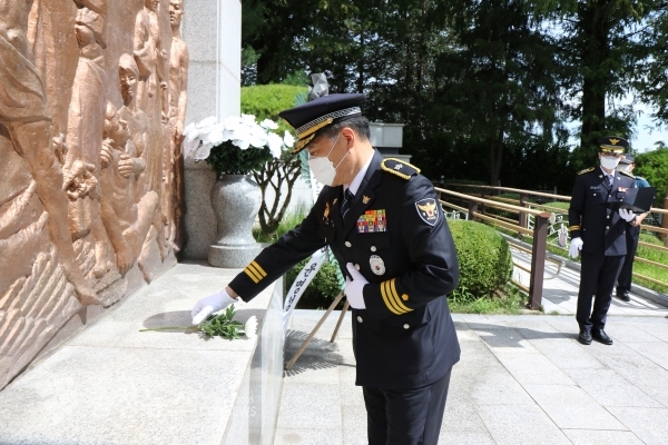조치원 추모공원 내 충령탑을 참배하는 신임 윤명성 세종경찰청장