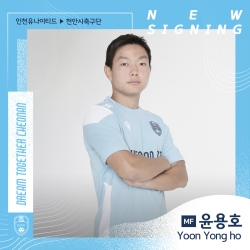 섬세한 볼터치와 박스 안에서의 위협적인 움직임이 장점인 윤용호는 공간을 활용하는 플레이로 천안의 다양한 공격 루트에 보탬이 될 것으로 기대된다.