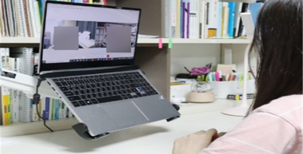 세종지역 한 직업계고 학생이 세종시교육청에서 운영하는 '원어민 1:1 영어회화 화상수업'을 받고 있다.