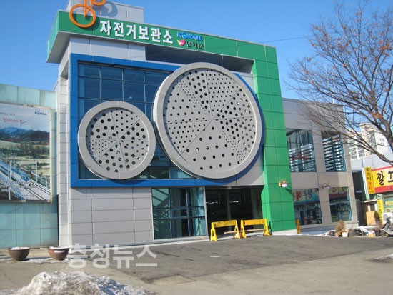 자전거보관소는 건물 외벽에 자전거 두 바퀴를 형상화했으며, 건물면적 총498.4㎡ 지상 2층의 건물로 내부에 자전거 160대를 주차할 수 있도록 자주식 자전거거치대를 설치했다.