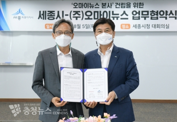 시와 오마이뉴스는 5일 세종시청 대회의실에서 ‘오마이뉴스 본사 건립을 위한 업무협약(MOU)’을 체결했다.