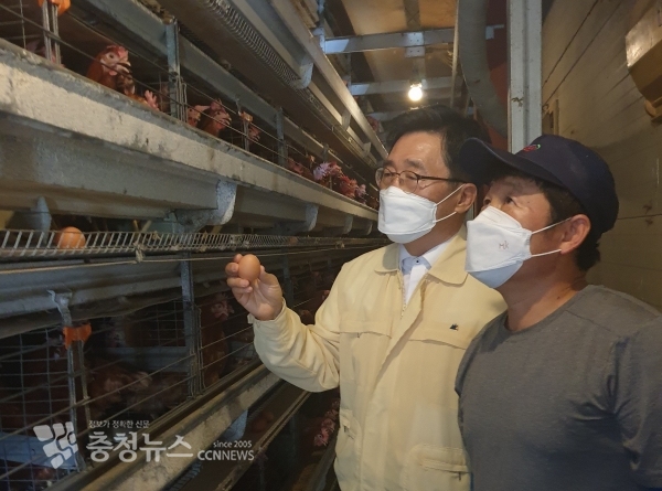 양계농장 현장 점검, 한국농수산식품유통공사 김춘진 사장(좌측)