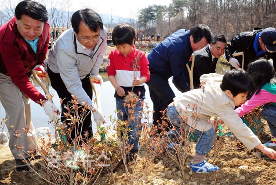 이날 행사에 참여한 공무원과 주민들은 살기좋은 쾌적한 녹색도시 실현을 위한 첫걸음으로 대청호 수변공원과 주변 녹지 13,000㎡ 일대에 영산홍, 백철쭉, 산철쭉, 산수유 등 6종 42,720본의 나무를 식재했다.
