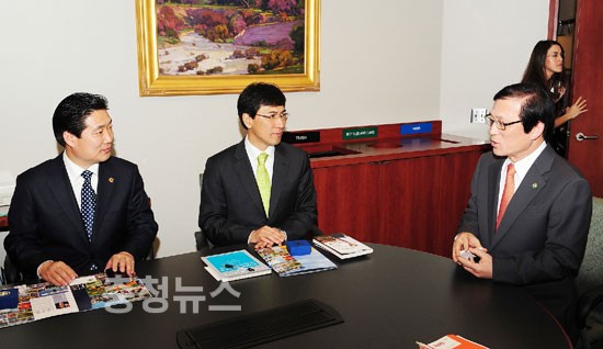 ▲ 안희정 충남지사가 얼바인시 강석희 시장을 만나고 있다.