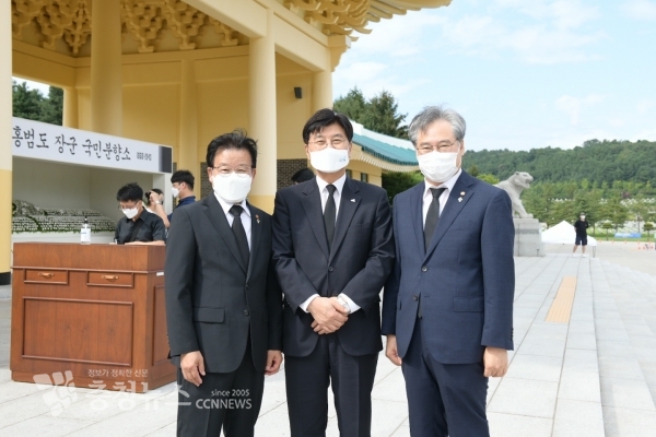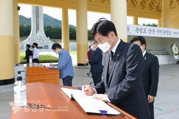 이 시장은 17일 국립대전현충원에 차려진 홍범도 장군 유해 임시 안치소를 찾아 유해 봉환에 따른 독립군 영웅의 넋을 추모했다.