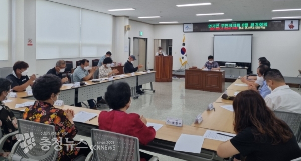 세종특별자치시시 연기면 주민자치회(회장 신동익)가 18일 면사무소 대회의실에서 ‘연기면 주민자치회 8월 정기회의’를 개최했다.