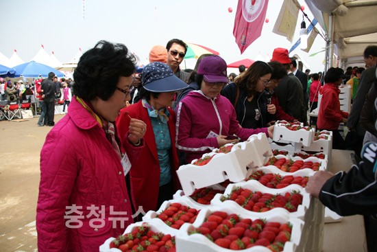 ▲ 많은 관광객 참여로 성황을 이룬 논산 딸기축제장.