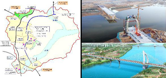 ▲ 행복도시 건설 추진 현황도 ▲ 금강 2교 건설 현장