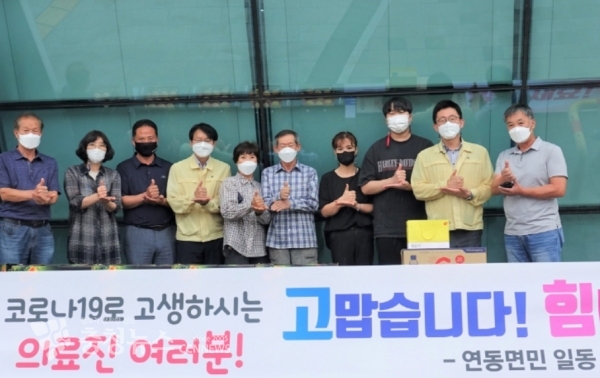 코로나19 방역 최일선에서 활동 중인 세종특별자치시 의료진들에게 연동면 주민이 감사물품을 전달해 지역사회에 훈기를 불어넣고 있다.