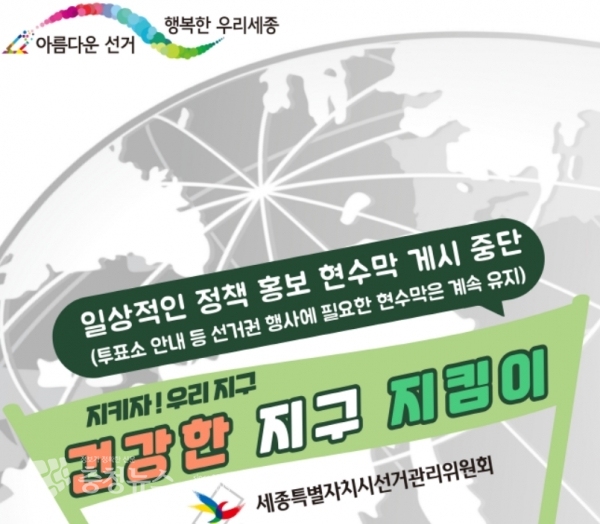 세종시특별자치선거관리위원회는 환경문제에 선제적·적극적으로 대응하기 위해 2021년 하반기부터 거리 현수막을 이용한 홍보 활동을 폐지한다.