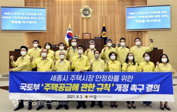 세종시의회는 ‘국토부 주택공급에 관한 규칙 개정 촉구 결의안’을 국회의장과 국토부 장관, 행정중심복합도시건설청 등에 이송할 예정이다.