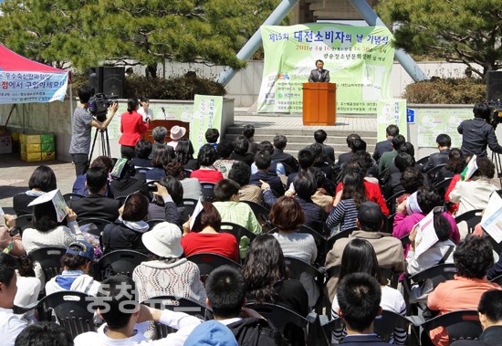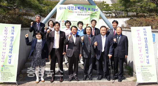 대전시는 16일 평송청소년 문화센터 앞마당에서 제15회 소비자의 날 기념행사를 가졌다. 대전소비자단체협의회가 주최한 이번 행사는 ‘식생활 안전’이란 주제로 염홍철 대전시장, 이상민 국회의원을 비롯해 대전녹색소비자연대, 대전YMCA, 학생, 시민등 300여명이 참석한 가운데 성황리에 개최됐다.