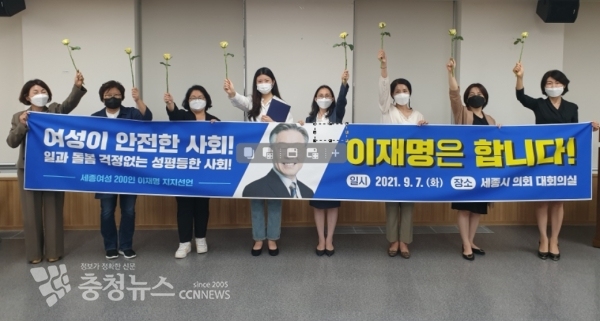 세종시 여성 200명은 양성평등 기념주간 마지막 날인 7일 오전11시 세종시 시의회 1층 강당에서 제20대 대통령선거 이재명 후보 지지선언을 했다.
