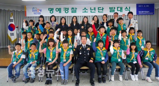 대전동부경찰서(서장 조영수)는 20일 4층 우리마당에서 경찰관과 소년단 및 지도교사 등 60명이 참석한 가운데 명예경찰소년단 제12기 출범식을 가졌다.