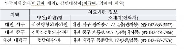 대상자가 신속・적정한 의료서비스를 거주지 가까운 곳에서 편하게 이용하실 수 있도록 대전광역시 서구·중구·대덕구 지역에 위탁병원을 새로 지정하였다.