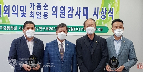 서산시의회 가충순 의원(인지·부석·고북)과 최일용 의원(성연·음암·운산)이 29일 한국양봉협회 충남지회(지회장 이승우)로부터 감사패를 받았다.