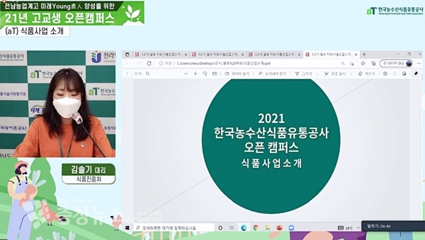 올해 고교생 및 대학생을 대상으로 진행한 오픈캠퍼스 교육과정은 코로나19의 장기화로 비대면 온라인 강의로 진행되었으나, 농업정책에서부터 스마트농업, 농수산식품 수출, 농식품 R&D 등 다양한 분야에 대해 전문기관의 교육을 한 자리에서 들을 수 있어 교육 참가생들의 만족도가 높았다.