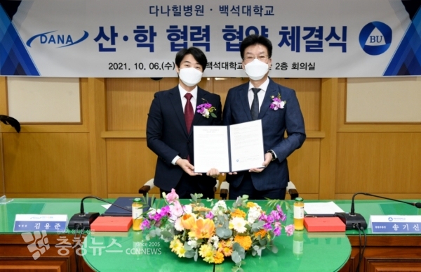 백석대학교(총장 장종현)는 6일 교내 자유관 2층 회의실에서 천안 다나힐병원과 산학협력협약을 체결했다.