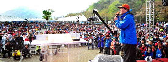 호우특보가 내려진 악천후 가운데 전국 16개 시도지부 약 1만여 명의 회원들이 270여 대의 버스를 이용해 시산제에 참석, 지난번 자유선진당의 계룡산 등반 당시와 비교돼 눈길을 끌었다.