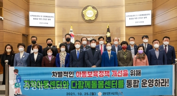 천안시의회(의장 황천순)는 25일 제246회 임시회 제2차 본회의에서 이종담 의원이 대표 발의한 ‘지역아동센터 및 다함께 돌봄센터 통합을 위한 건의문’을 채택했다.