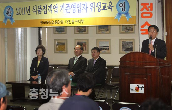 대전 동구(구청장 한현택)는 12일 동구 민방위교육장에서 한현택 구청장을 비롯한 일반음식점 영업주 500여명이 참석한 가운데 ‘2011년 음식업 영업자 위생교육’을 실시했다.
