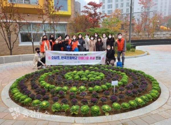 이번 꽃밭조성은 소담동 주민자치회 ‘21년 주민자치 특성화 프로그램 사업’일환으로 마련돼 이윤희 세종시의원을 비롯한 주민자치회 위원, 학생, 학교관계자 등이 참여했다.