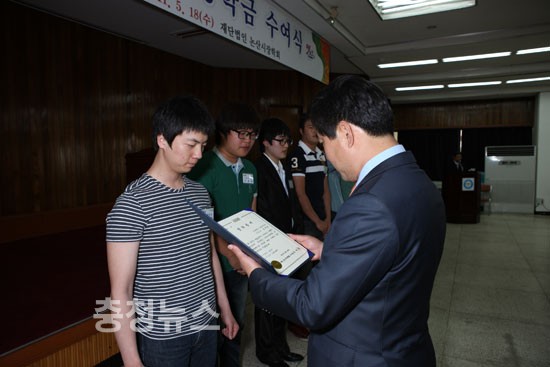 이날 황명선 이사장은 격려사에서 “진취적이고 적극적인 사고로 각 분야에서 최고가 될 수 있도록 최선의 노력으로 꿈과 희망을 키우길 바라며 논산시민의 희망과 정성이 담긴 소중하고 아름다운 나눔의 장학금임을 잊지 말 것”을 당부했다.