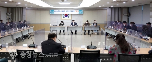 [충청뉴스 최형순 기자] 아산시의회(의장 황재만)는 10일 코로나19 장기화로 어려움을 겪고 있는 아산시 문화예술단체 관계자들과 간담회를 가졌다.