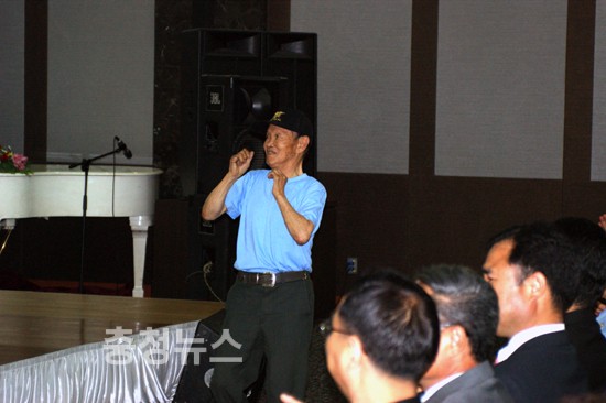 ▲ 2부 '대전장애노인 한마당 대잔치'에서 노인 한분이 무대 앞으로 나와 춤을 추고 있다.