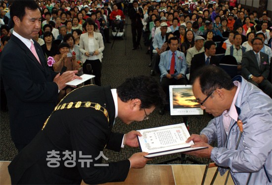 지체장애노인 600여명을 모시고 진행된 2부에서는 박성효 前 대전시장이 참석한 가운데, 어르신들이 좋아하는 공연과 올해로 21회를 맞은 ‘효자ㆍ효부 시상식’이 진행됐다.