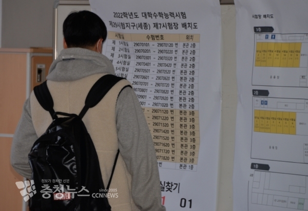 [충청뉴스 최형순 기자] 2022학년도 대학수학능력시험은 단계적 일상 회복 위드 코로나 조치 속에 세종 지역 내 시험장은 차분한 분위기였다.