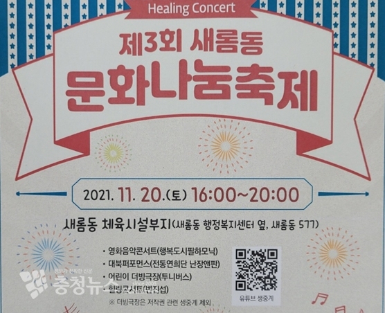 [충청뉴스 최형순 기자] 세종특별자치시 새롬동(동장 김산옥)이 정부의 단계적 일상회복에 발맞춰 주민자치회와 함께 ‘제3회 새롬동 문화나눔축제’를 개최한다.
