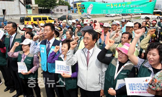 대전 동구 대동주민센터는 25일 대동천 하상에서 한현택 동구청장을 비롯해 관내 경로당 어르신 200여명이 참석한 가운데 ‘대동 어르신 환경봉사단’ 발대식을 가졌다.