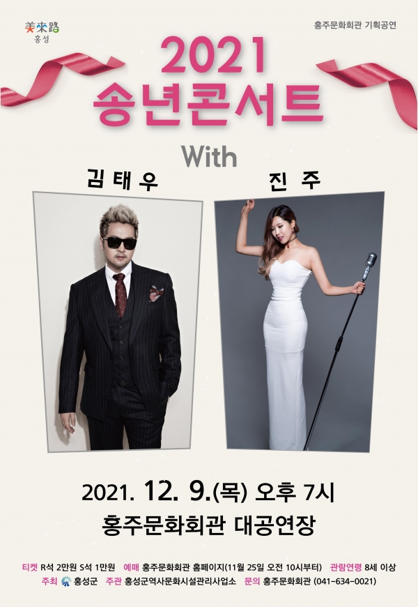 [충청뉴스 이성엽 기자] 홍성군은 다음 달 9일 오후 7시에‘2021 송년 콘서트 with 김태우, 진주’를 개최한다고 23일 밝혔다.