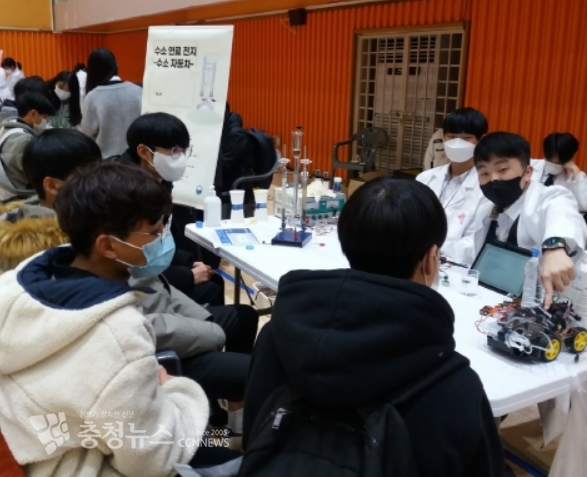 ‘수소연료전지-수소자동차’부스에서 만난 이모 군(용화중 3학년)은 “기술 시간에 신에너지에 대해 배우고 있어서 수소연료에 관심이 갔다”며, “온양고 형들이 관련 이론을 직접 설명해 주니 쉽고 이해가 잘 되어 좋았고, 형들이 만든 수소자동차를 같이 온 친구들과 함께 돌아가며 작동까지 해 볼 수 있어서 더욱 좋았다”고 말했다.