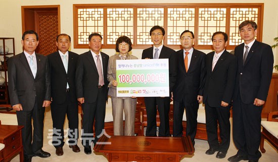 도는 27일 도지사 접견실에서 안희정 지사와 박동은 유니세프 한국위원회 총장 등이 참석한 가운데 1억원의 후원금 전달식을 가졌다.