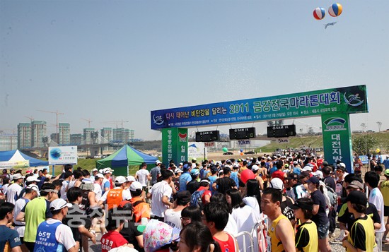세종시 금강변에서 열린 ‘2011 금강 전국마라톤 대회’가 지난 일요일 황영조 선수와 마라톤 참가자를 비롯한 가족, 자원봉사자 등 5천여명이 참가한 가운데 29일 오전 10시에 개최됐다.