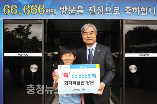 한국조폐공사(사장 전용학)는 창립 60주년을 맞이해 지난 27일 화폐박물관에서 현용화폐의 합산 숫자인 66,666번째 입장하는 관람객에게 축하 이벤트를 가졌다.