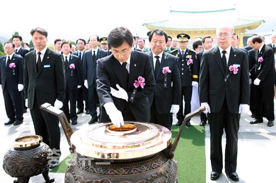 충남도(도지사 안희정)는 안희정 지사를 비롯한 충남도 관계자와 보훈단체장 및 국가보훈대상자ㆍ가족, 각계 대표, 주민 등 3천여명이 참석한 가운데 지난 6일 국립대전현충원에서 열린 ‘제56회 현충일 추념식’에 참석, 순국선열 및 호국영령의 숭고한 희생정신을 기렸다.
